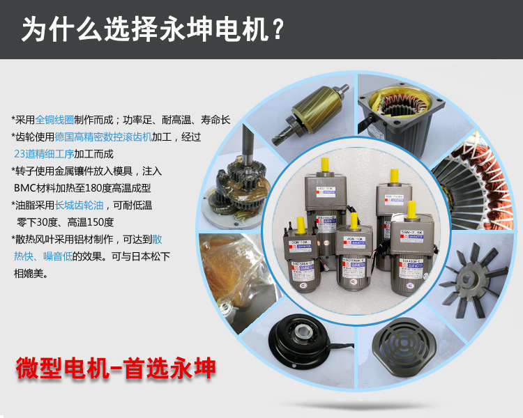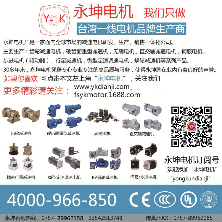 永坤電機是一家臺灣老品牌的齒輪減速電機產品生產企業,現生產與銷售各款各樣的齒輪減速電機產品,蝸輪蝸桿減速機產品,無刷電機,直流、交流伺服電機,配套相關驅動器,變頻器,調速器,控制器,歡迎新老客戶朋友們來電咨詢,更多詳情可與業務深入溝通、交流。電話15118744788蘇工,15118744777潘工,企業網站m.dzzhsq.cn
