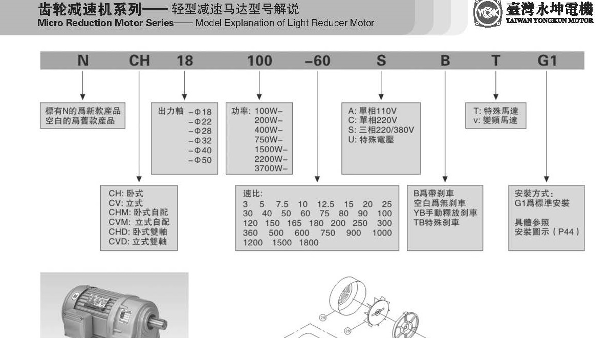 永坤齒輪減速電機NCH22-100-40S型號介紹