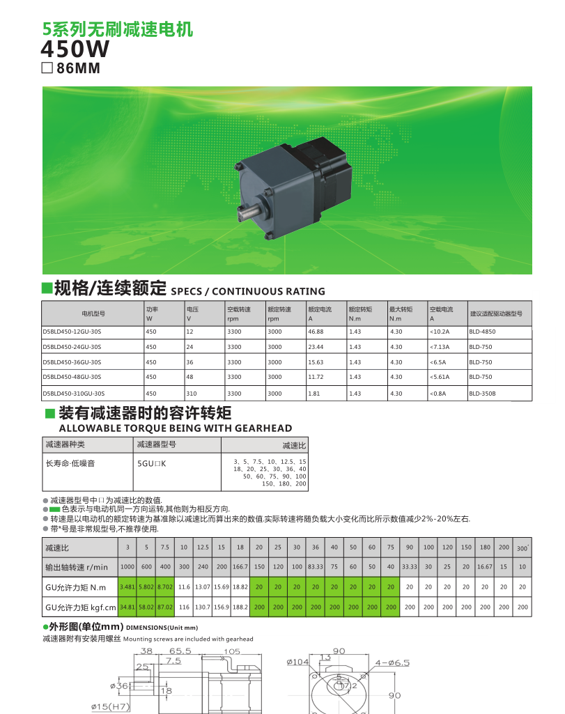5系列無刷齒輪減速電機450W