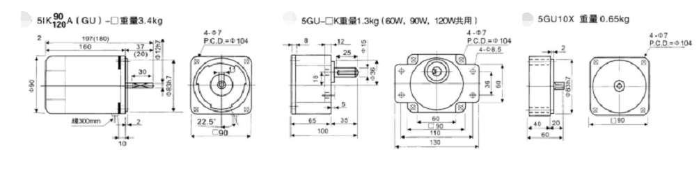 型號(hào)書(shū)寫(xiě)為5IK120A-CF/SF,可配齒輪減速器5GU-K,減速比可選擇