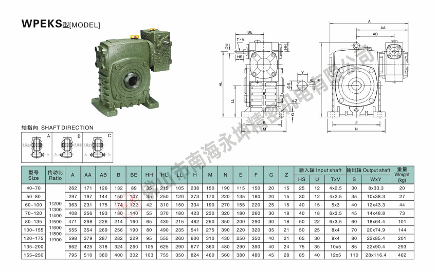 WPEKS減速機蝸輪蝸桿型號40-50-60-70-80-90-100-120-135-175-185-200-250